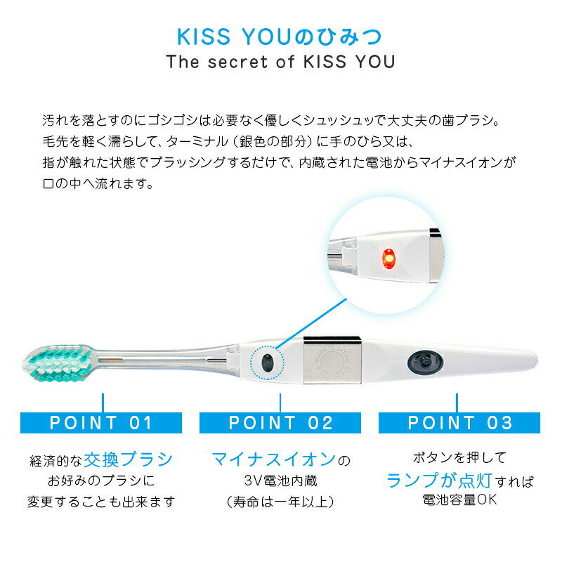 商品説明 ■イオン歯ブラシKISS YOU(キスユー)に除菌ケース付きセットが登場! KISS YOUのマイナスイオン効果をそのままに、忙しい毎日や旅行中でも清潔を保てる除菌ケースがついたセットです。