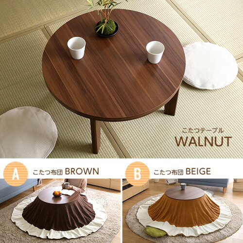 仕様詳細(こたつテーブル)商品名こたつテーブル丸形(直径68cm)サイズ本体外寸:(約)幅68x奥行68x高さ35.5cm天板の厚み:(約)1.2cmカラーウォールナット、ナチュラル特徴電気代はエアコンの4分の1以下!寒い冬を賢く乗り切る省エネ暖房オフシーズンはセンターテーブルとして一年中利用可能天板は耐熱性・耐水性に優れた水・汚れに強いPVC加工済み日本国内トップメーカーの薄型石英管ヒーター使用天板裏面は個性的な色にも合わせやすいホワイトのリバーシブル材質天板:パーチクルボード脚部:MDF表面加工:PVCシート付属品メトロ電気工業株式会社製300W石英管ヒーター(1年間保証付き)スイッチ付き電源コード梱包サイズ(約)幅71x奥行71.5x高さ15.5cm注意※商品の仕様は、随時改良するように努めております。